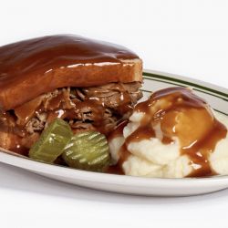 The roasted beef is then thinly sliced and served on fresh rye bread smothered with our savory gravy. And, you won't find anything instant about our homemade mashed potatoes... we use the real deal, which is the perfect accompanyment to complete this classic meal. So whether you're looking for a quick lunch or a hearty dinner, Tony Packo's Roast Beef Sandwich is sure to hit the spot!
